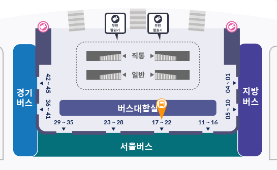 ▶ 6102번 인천공항 2터미널 승차위치 (교통센터 지하 1층 22번)